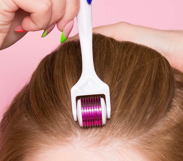 Microneedling with dermarollers on the scalp triggers the body’s wound healing response and helps in the development of new hair follicles. It also stimulates blood circulation and increases nutrient supply to the follicles.